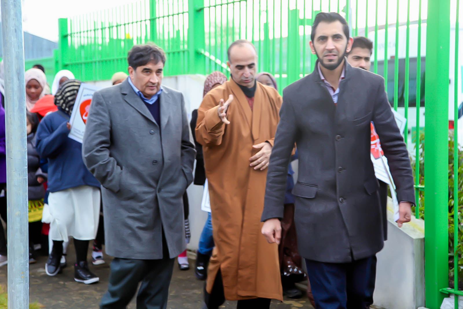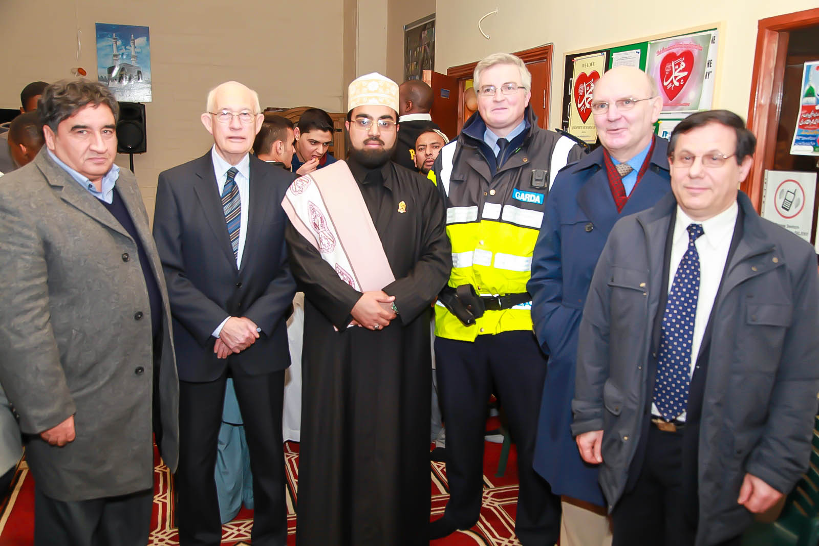 The program commenced with the beautiful recitation of Quran by Qari Abdur Rahman followed by welcome speech by The Founder & President of Al-Mustafa Islamic Centre Ireland, Shaykh Dr. Muhammad Umar Al-Qadri. Shaykh Umar during his welcome speech asked the participants if they would like to hold the Peace Walk as the weather was very cold and the roads were slippery. The participants all expressed that they were not worried about the cold weather as their love and passion for Peace & Unity in following the footsteps of the Prophet Muhammad (Peace and Blessings be upon Him) was burning in their hearts and would surely keep their bodies warm. The participants were then instructed to gather outside and prepare for the Mawlid Peace Walk. The Mawlid Peace Walk was lead by leaders of the Muslim and Christian faiths. The local Gardai (Police) under the leadership of the Community Guard Sgt. Vincent Conolly assisted the participants during the Peace Walk.
